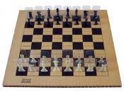 According to literature from Paradoxy Products, the New Wave Chess & Checkers set is a highly portable game board that can be played anywhere without the risk of the pieces blowing away.