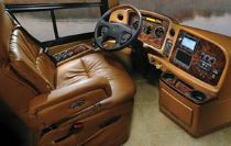 One of our other tests, which involved driving the coach diagonally down a steep driveway cut to determine how it would recover from the resulting sway, happened by accident. Pulling out of a parking lot on what appeared to be a driveway, we bumped down over a curb. Though each tire thumped independently, we noticed no sway. The equalizing system between the Hendrickson air bags worked instantly and smoothly, allowing the coach to simply step down off the curb.