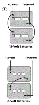 Illustration 1: Two 12-volt batteries connected in parallel and two 6-volt batteries wired in series.