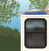 To keep rain from accumulating on my motorhome’s slideout awnings, I decided to blow things up. That is, I began using inflatable rafts. I have two slideouts; each one extends approximately 31 inches from the side of the motorhome. At a local swimming and pool store, I found rafts that measure 30 inches wide and 72 inches long. I inflate the rafts just enough to slide them under the awnings. The longer slideout requires the use of two rafts, while the shorter slideout uses just one. A neighbor who uses this concept has to employ an additional inflatable tube to fill up the space under his longest slideout. By adjusting the amount of air I put into the rafts, I can control the height and ensure that they won’t blow away. Storing them is easy once they are removed from under the awning and deflated.