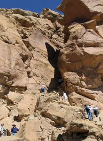 A trail at Chaco Canyon in New Mexico takes hikers over rocky terrain leading to one of the great houses left behind by a long-ago civilization.