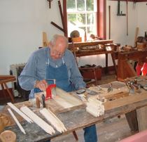 A craftsman demonstrates 19th century box-making at Shaker Village in Pleasant Hill in Harrodsburg, Kentucky.