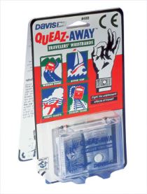 Queaz-Away Travelers’ Wristbands from Davis Instruments Corporation are a nondrug aid for people who suffer from motion sickness when traveling along bumpy, twisting roads.