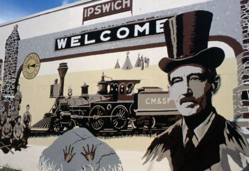 Quirky conversation pieces along the Yellowstone Trail include a mural commemorating J.W. Parmley, founder of Yellowstone Trail.