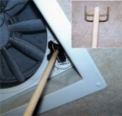 Because the ceiling vents in our motorhome operate manually and are difficult to reach without a stepladder, I decided to make a special tool to open and close the vents. I began with 1/2-inch-diameter wood dowel that is 18 inches long. Since the center of the vent knob has a recessed screw, I whittled down one end of the dowel to fit inside this recessed hole. I then drilled a small hole through the top of the dowel that was just large enough for a piece of wire coat hanger to fit through. After sliding the wire through the hole, I bent it on both ends so the part of the wire extending upward would engage the flutes of the knob. I secured the wire to the dowel using glue or epoxy. Now we can open and close the vent with the tool while standing securely on the floor.