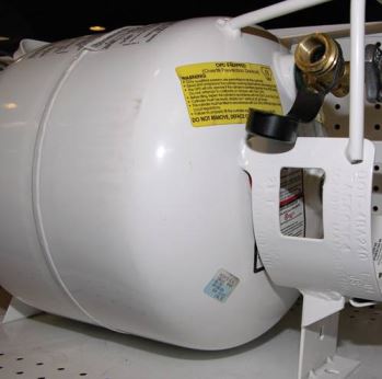 Some older motorhomes have two horizontally mounted DOT propane cylinders with an automatic changeover valve.
