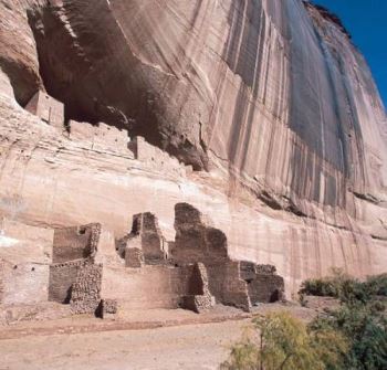 Canyon de Chelly (de shay), in northeastern Arizona, is a national monument that is wholly within the Navajo Nation Indian reservation. The canyon is considered sacred by the Indians, and it is still occupied by Navajo residents. So, visitors are escorted into the canyon by authorized guides.