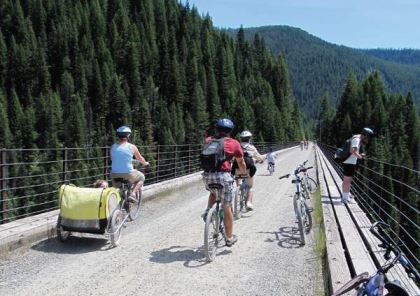 Dramatic views and exciting terrain await bicyclists who travel the Hiawatha Rail-Trail, a downhill, family-friendly mountain bike route on former train tracks in northern Idaho.