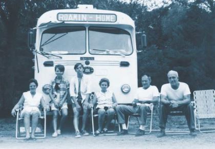 But one day, that rickety, old, yellow ex-school bus (now repainted) that I had seen rumbling down the hill with Dad pumping the brakes rolled out of our driveway as our converted bus — our motor coach — with a sign over the windshield titled “Shake, Rattle, and Rest.” It did, it did, and, yes, we were able to rest well in it.