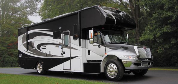 This new Super C motorhome is built on the Navistar International TerraStar diesel truck chassis and loaded with luxury.