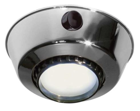 The Comet S surface-mount light operates with a side-mounted rocker switch. For low-profile applications, the Comet R recess-mount light works with a toggle switch, or it can be ordered without a switch. Each 12-volt/24-volt light is equipped with a Bee Green LED bulb in either 160-lumen warm white or 190-lumen cool white to provide the same or better light as comparable halogen bulbs while using less power. The plastic fixtures are available in all white or in chrome with a black swivel and switch.