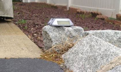 We often arrive home after dark, and I must be extremely careful when backing up the driveway next to my house. To provide a reference point that is easily visible in my rearview mirror, I put a solar-powered light at the back end of the driveway. The light I purchased came from Harbor Freight and is designed specifically for use on driveways.