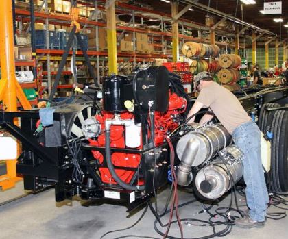 At the rolling stage, the engine, emissions equipment, and driveline components are added.