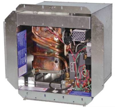 The microprocessor and electronic circuitry, including two operational LEDs, are contained in a handy drawer that pulls out from the exterior for maintenance and inspection. According to the installation and operating instructions that are included with each heater, the RV-500 should undergo a routine inspection by a qualified service technician at least once a year. The guide includes eight areas of concern that should be looked at during the inspection.