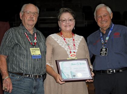 Genny Jennings, L26, was presented the Kenneth T. Scott Pipe Dreamer’s Award by Charlie Adcock, immediate past national president, and Jon Walker, newly elected national president, on July 18 in Owosso, Michigan, following FMCA’s 96th International Convention. This award recognizes individuals who have demonstrated exceptionally worthy and beneficial service to the association and to motorhome owners. Ken Scott, L63, was FMCA’s first executive director and dedicated years to nurturing the association.