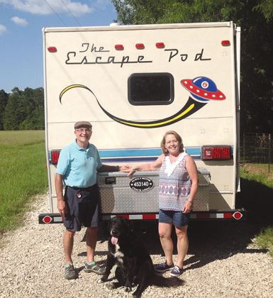 Steve and Lisa Thomas’ Type C motorhome, dubbed “The Escape Pod,” has been outfitted with many homey touches.