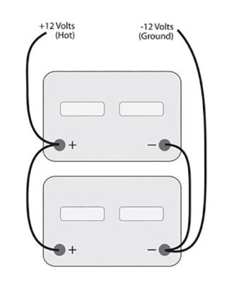 This illustration depicts two 12-volt batteries wired in parallel.