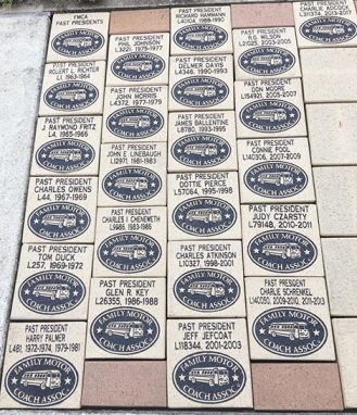 We started the brick garden with commemorative bricks to honor each of FMCA’s past national presidents. As presidents come and go, the garden will expand and grow. A member can donate a brick in memory of a loved one. As a chapter or an area association, you can donate a brick for a member who has demonstrated outstanding accomplishments or done something worthy of commemorating. The bricks come in several sizes and can be purchased through the RV/MH Hall of Fame (www.rvmhhalloffame.org; 800-378-8694, 574-293-2344). Bricks FMCA members already had purchased are located in this area as well.