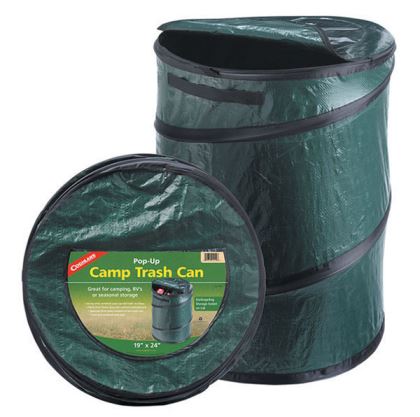 One man’s trash can is another man’s collapsible storage container. Such is the case with Coghlan’s Pop-Up Camp Trash Can. It can be used at a campsite for trash and recyclables, or to temporarily store things such as toys and household items.