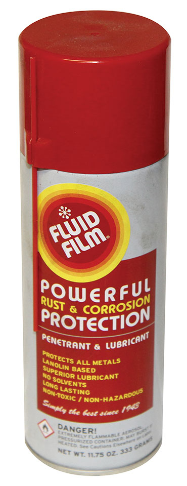 Generally, it is applied with a spray can, although larger capacities are available. Most protectants harden, but Fluid Film remains soft and flexible. Its wool-wax-based formula adheres to surfaces with tenacity. It also is self-healing, so scratches won’t damage the coating, yet it easily can be removed if desired. Thanks to the product’s high flash point of 405 degrees Fahrenheit (compared to 125 degrees for most solvent-based products), Fluid Film won’t bake off when applied to hot engine components. Except for the propellant in aerosol cans, Fluid Film is 100 percent corrosion control material (compared to the 10 percent to 30 percent found in solvent-based products).