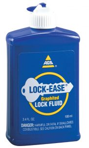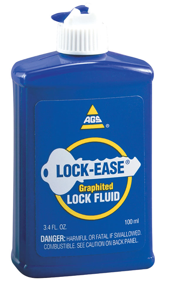 Lock cylinders require lubrication to ensure smooth operation. Lock-Ease, from AGS, is a graphited fluid that protects against sticking, rust, and freezing. It seals out moisture so that the locks can be used year-round. A penetrating fluid carries the graphite deep into the lock cylinder. After a short while, the fluid evaporates, leaving a long-wearing graphite film that is superior to a dry graphite product. The film will not run, even in hot temperatures, nor will it harden in subzero temperatures.