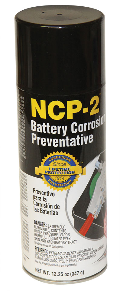 You know it’s time to clean battery cable connections when they become coated with crusty, power-robbing, blue deposits. But then the corrosion process starts all over again. NCP2 is a corrosion preventative that is applied to battery terminals and cables. This oil-based, viscous compound never dries out or evaporates, and it creates an impenetrable seal around battery terminals and ground cable connections. NCP2 should be sprayed onto the battery cable ends after the connections have been thoroughly cleaned.