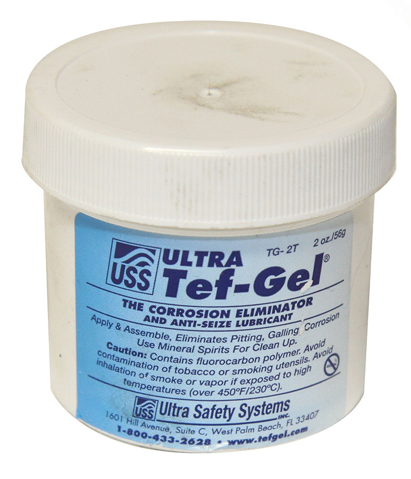 Tef-Gel is formulated to prevent dissimilar metal corrosion. The creamy gel contains 40 percent polytetrafluoroethylene (PTFE) fine powder, which extrudes out of the contact area and into the void of the surrounding area. Excess Tef-Gel easily cleans up with mineral spirits or WD-40.