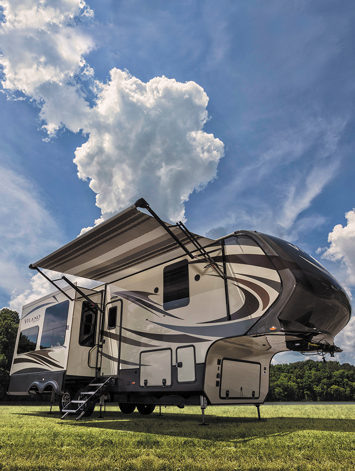 I recently tested the Vilano 320GK, a 35-foot fifth-wheel equipped with three slideouts and a number of outstanding features, such as a gourmet kitchen and theater seating. Kings Campers in Wausau, Wisconsin, provided this RV for our review.