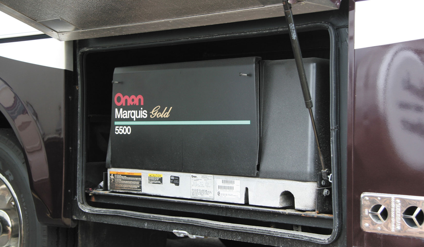 Generator options include the Cummins Onan Marquis Gold 5,500-watt gas-powered unit.