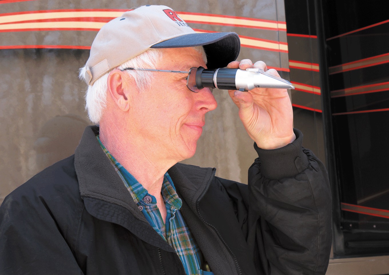 The author peers into a refractometer.