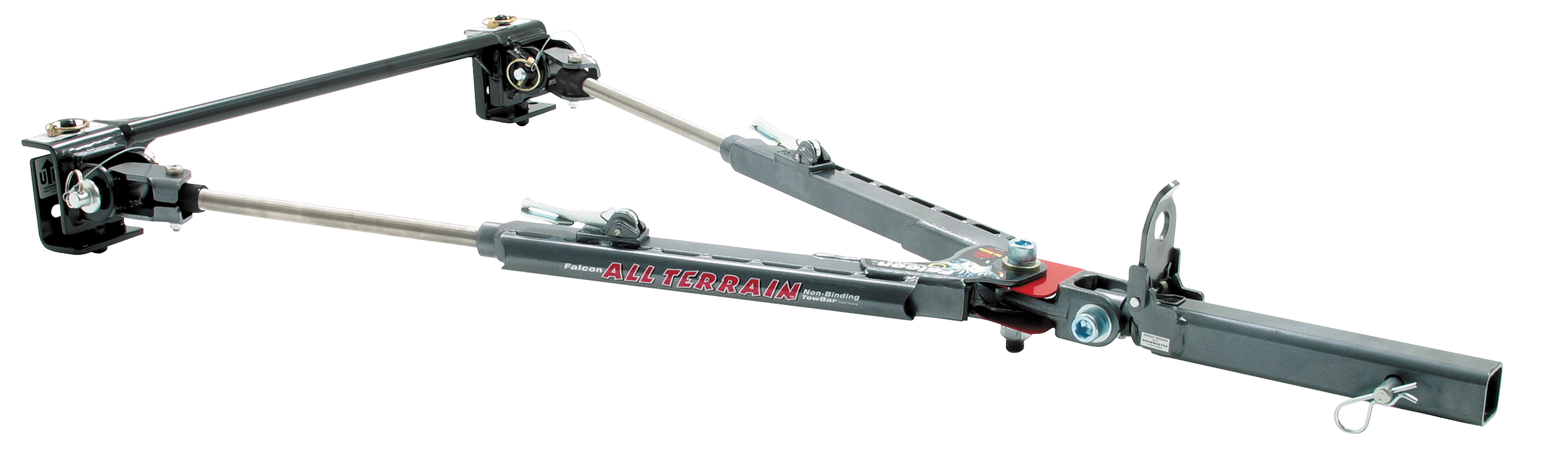 Roadmaster’s extensive selection of towing products includes tow bars, baseplates, supplemental braking systems, lighting kits, and other accessories. The nonbinding line of tow bars includes the Falcon All-Terrain ($873), a steel bar rated at 6,000 pounds; the Blackhawk 2 All-Terrain ($1,020), a steel bar rated at 10,000 pounds; and the Sterling All-Terrain ($1,112), a lightweight bar made with military-grade aluminum outer arms, rated at 8,000 pounds. All Roadmaster tow bars use stainless-steel inner arms and Nylatron bushings. Roadmaster’s latest entry is the Nighthawk ($1,250), rated for 8,000 pounds. Its powder-coated aluminum outer arms are the longest ever produced. The Nighthawk features LED lighting that taps into the taillight circuit that passes through the tow bar. (800) 669-9690; www.roadmasterinc.com.