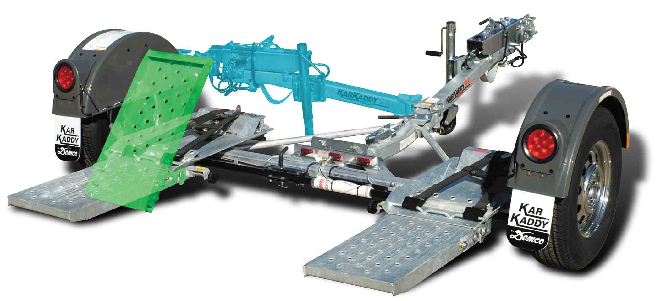 Demco’s Kar Kaddy series of tow dollies includes the Kar Kaddy SS ($4,674), which has hydraulic disc surge brakes and a galvanized finish. The dolly is 133 inches when fully extended, but it folds to a length of 67 inches. It is rated for a maximum vehicle weight of 4,700 pounds, with a maximum front axle weight of 3,500 pounds. (800) 543-3626; www.demco-products.com.