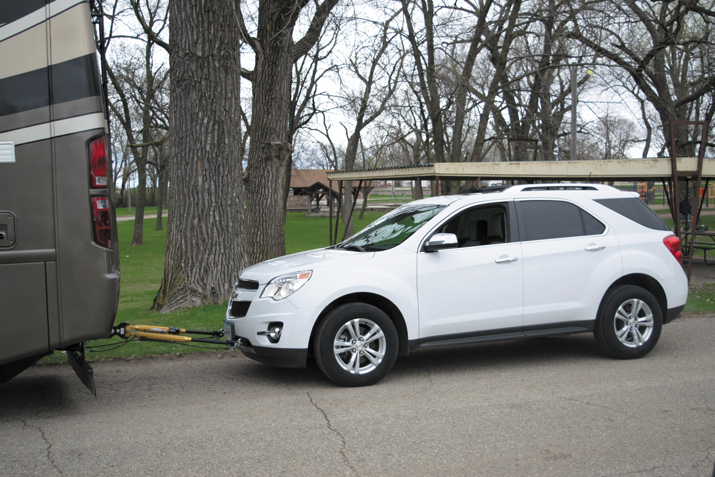 When rear-wheel-drive and four-wheel-drive vehicles with automatic or manual transmissions are not approved by their manufacturers for flat towing, the Superior Driveline Drive Shaft Coupling may be a solution. The system disconnects the driveshaft at the rear U-joint and is controlled by a heavy-duty cable from the driver’s seat, so it’s not necessary to get under the vehicle. Simply pull the cable handle — much like the old choke cables — and disengage the steering wheel lock, and you’re ready to tow. To re-engage the driveshaft, push in the cable handle using a designated procedure, and you’re ready to drive. The cost of a Superior Driveline Drive Shaft Coupling ranges from $765 to $1,600, depending on the vehicle. Installation charges are extra. (855) 447-3626; www.superiordriveline.com.