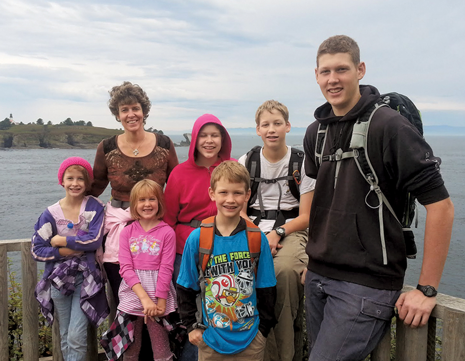 Susan Davis and her children became full-time RVers after a life-changing loss. The entire family iis pictured n Washington state in 2013; from left, Jennifer, Susan, Mary Emma, Lindsay, Matthew, Jeremy, and Garrett.