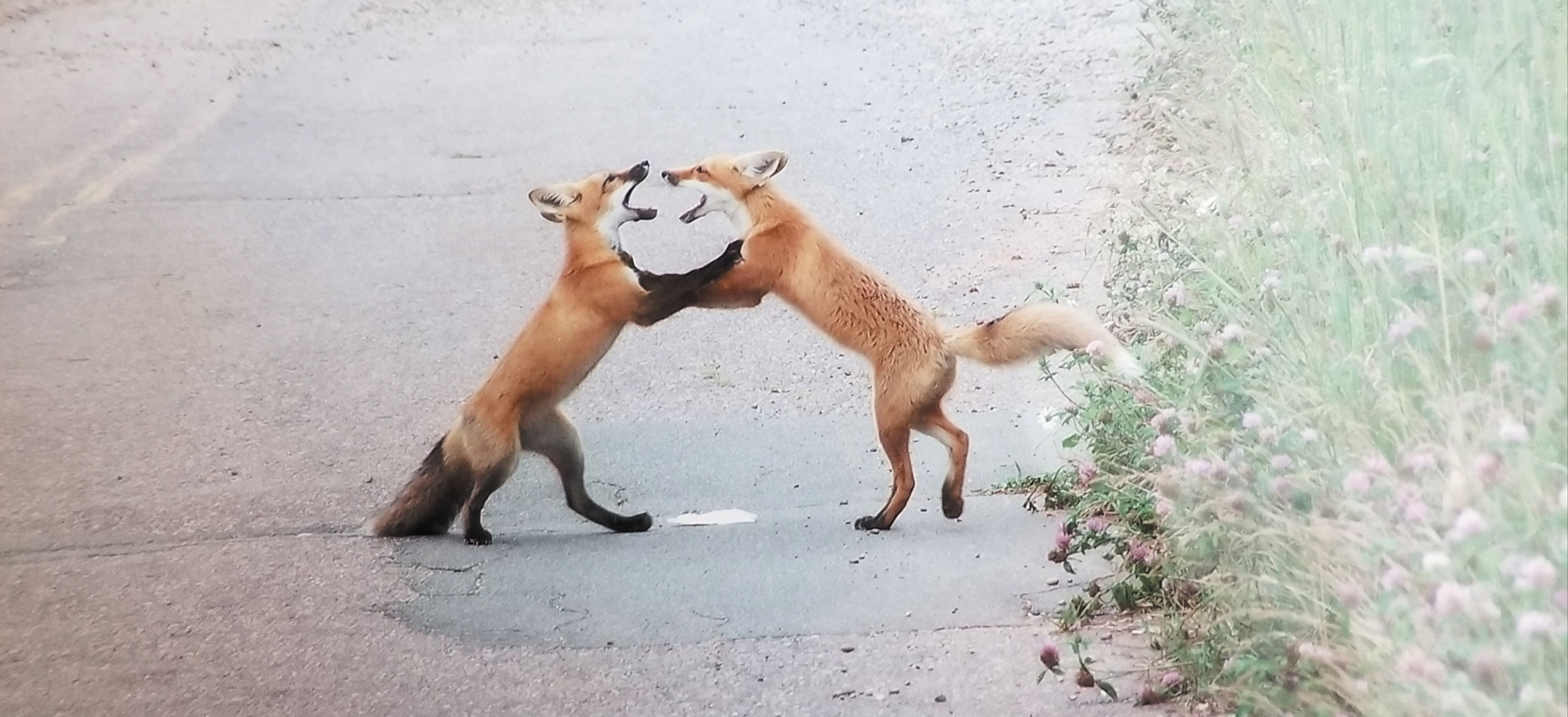 Gerrit and Gerdien Dykman encounter foxes at battle along a country road in Prince Edward Island, Canada (Gerdien Dykman).