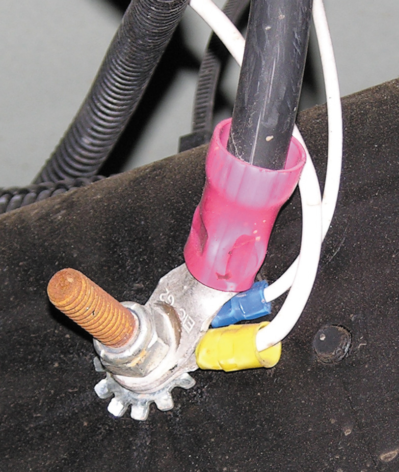 A new ground conductor runs from the motor housing directly to the frame of the motorhome.