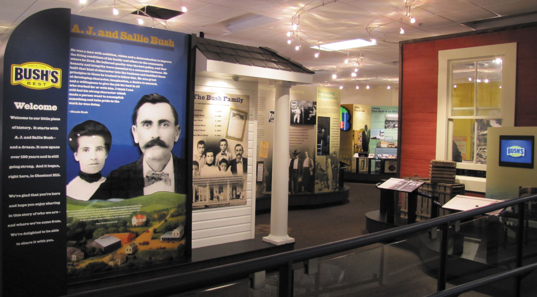 At the Bush Brothers & Company visitors center, exhibits include a timeline of the family business, which started in 1897.