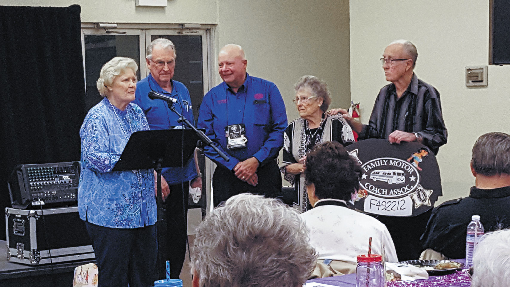 On Saturday night Don and LaBerta were presented their very own FMCA membership — F492212 — and a membership in the Western Area Coaches For Christ chapter. What a privilege it was for me to help with this presentation.