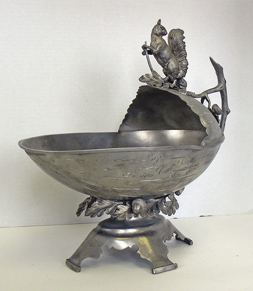 Displays at the CFA Foundation Feline Historical Museum include fancy trophies, such as this 1883 nut bowl