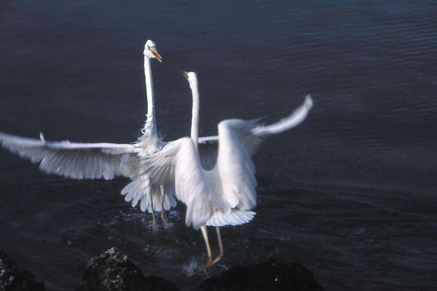 Suddenly, they both leapt into the air, face to face, wings flapping, bills parted. They leapt again and again, water splashing, necks and bodies stretched high. I lost track of the frame I was on and only hoped I wouldn’t run out of film.