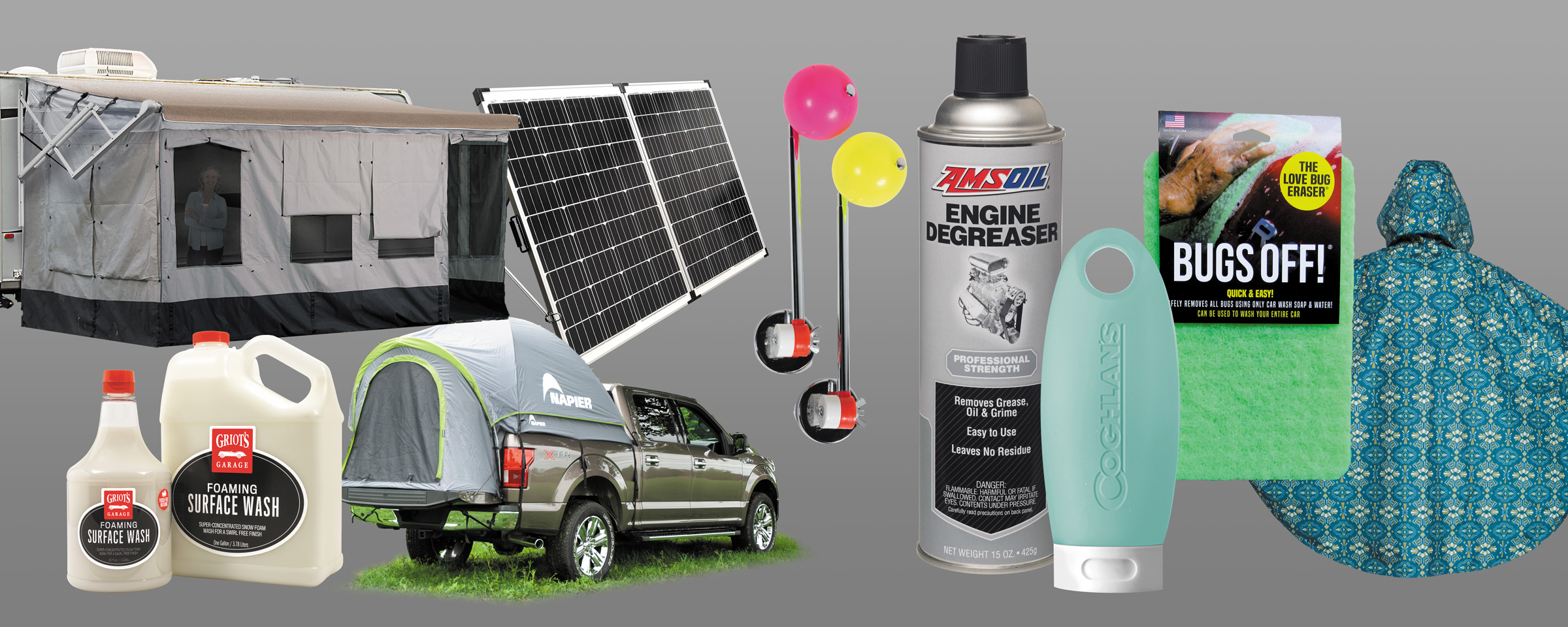 Bugs Off Pads from Awesome ProductsSplat-splat-splat! There’s not much you can do to prevent bugs from splattering your RV’s windshield and paint, but you can remove them using soap, water, and Bugs Off Pads from Awesome Products. The reusable pads also are said to be effective in removing dirt, grime, minor road tar, bird droppings, and the like.