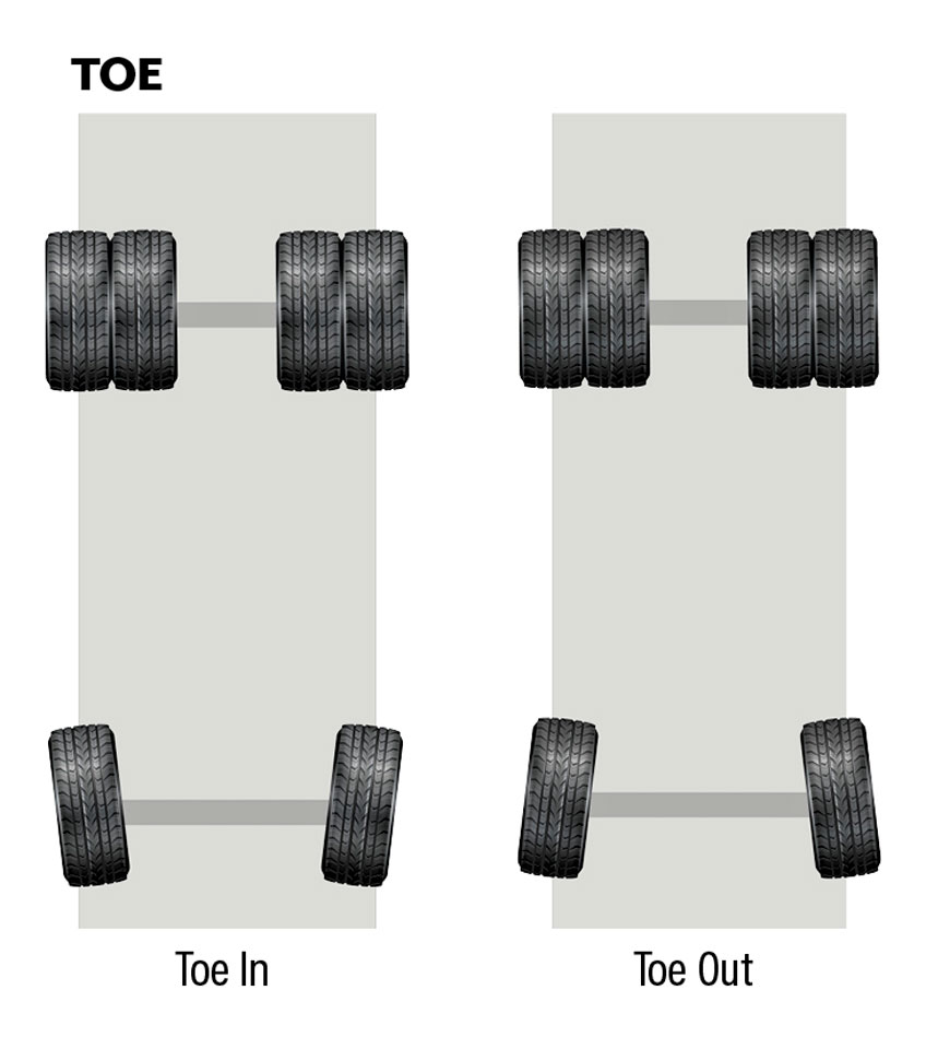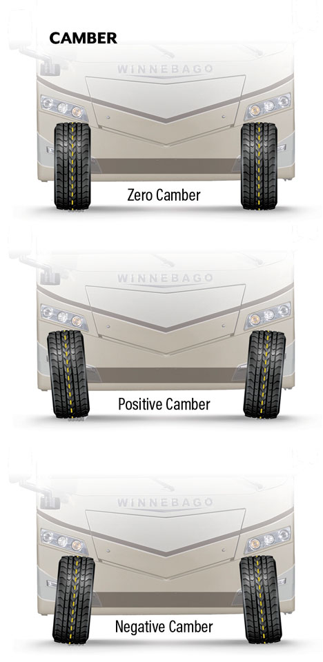 Next, have the alignment checked, including camber, caster, and toe-in. Camber is the tilt of a wheel when viewed from the front or rear of a vehicle. Caster is the angle of the steering axis when viewed from the side of the vehicle. Toe is the extent that tires turn inward or outward when viewed from above.