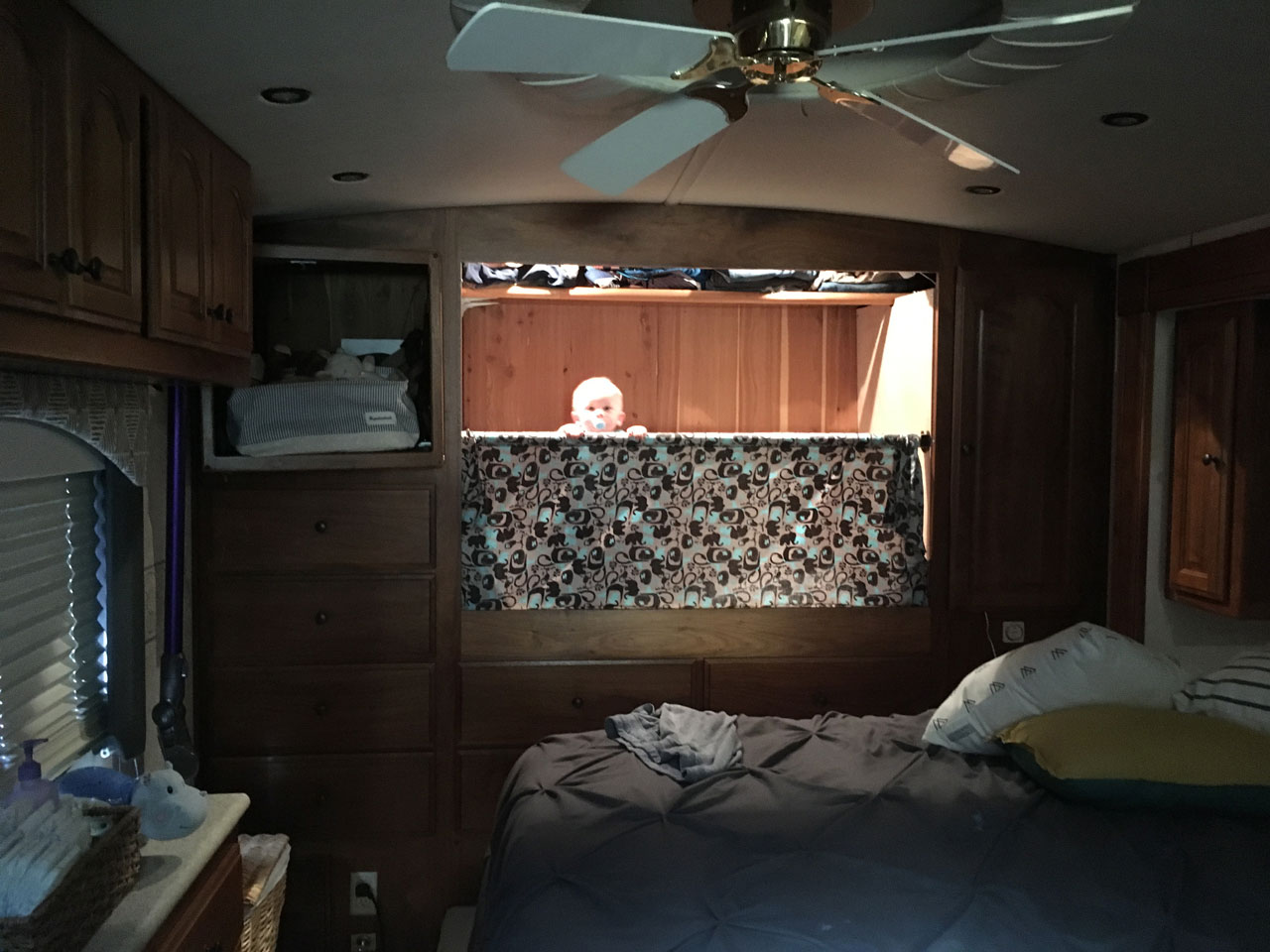 With help from my mom, we tidied up our messy coach and created a safe home for our baby boy. We’ve lived full-time in the RV ever since.