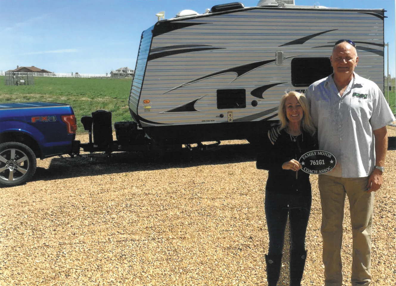 Bill and Deanie’s son, Brad Hendrix, and his wife, Suzi, travel with FMCA membership number F761G2 affixed to their RV.