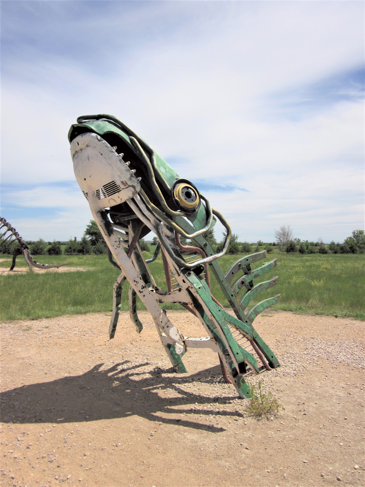 Besides Carhenge, vehicle art is also on the grounds; the collection includes “The Spawning Salmon, “made from an assortment of parts and pieces.
