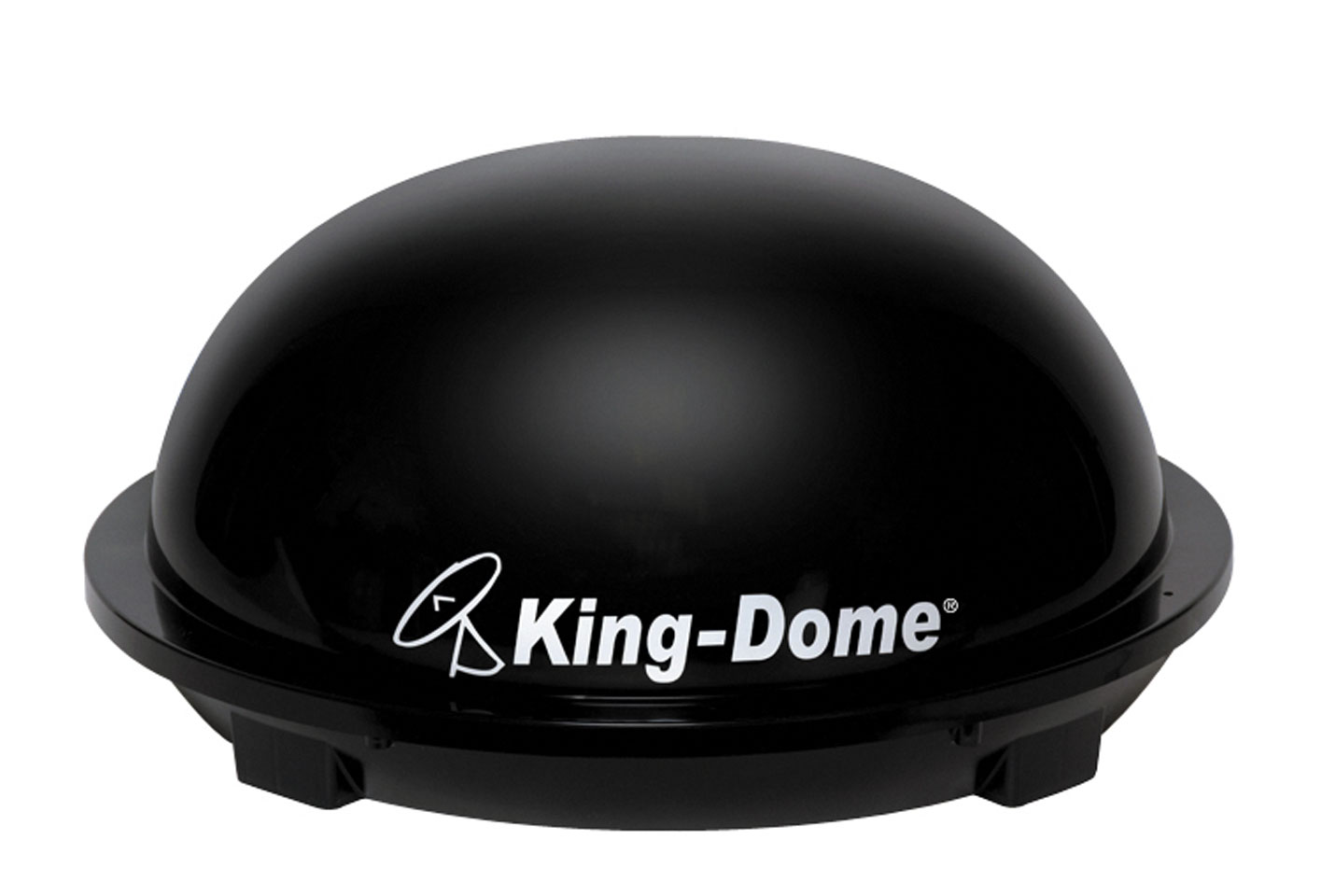 The King-Dome in-motion satellite dish allows for television viewing when stationary or while traveling.
