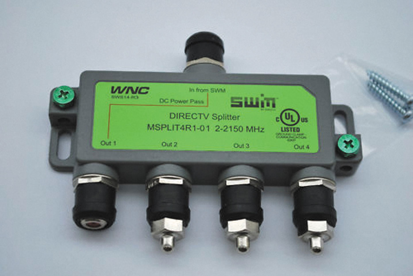 All these devices must be connected to create a complete system. RG-6 coaxial cable is used to bring in feeds from a cable TV connection, a satellite dish, or from an over-the-air broadcast antenna. Coaxial splitters allow a single input to branch off into two or more outputs. A satellite dish using single wire multiswitch (SWM) technology requires a power inserter. It sends power through an SWM-compatible splitter to allow DC voltage from the inserter to pass upward to power the satellite dish’s low-noise block downconverter (LNB).