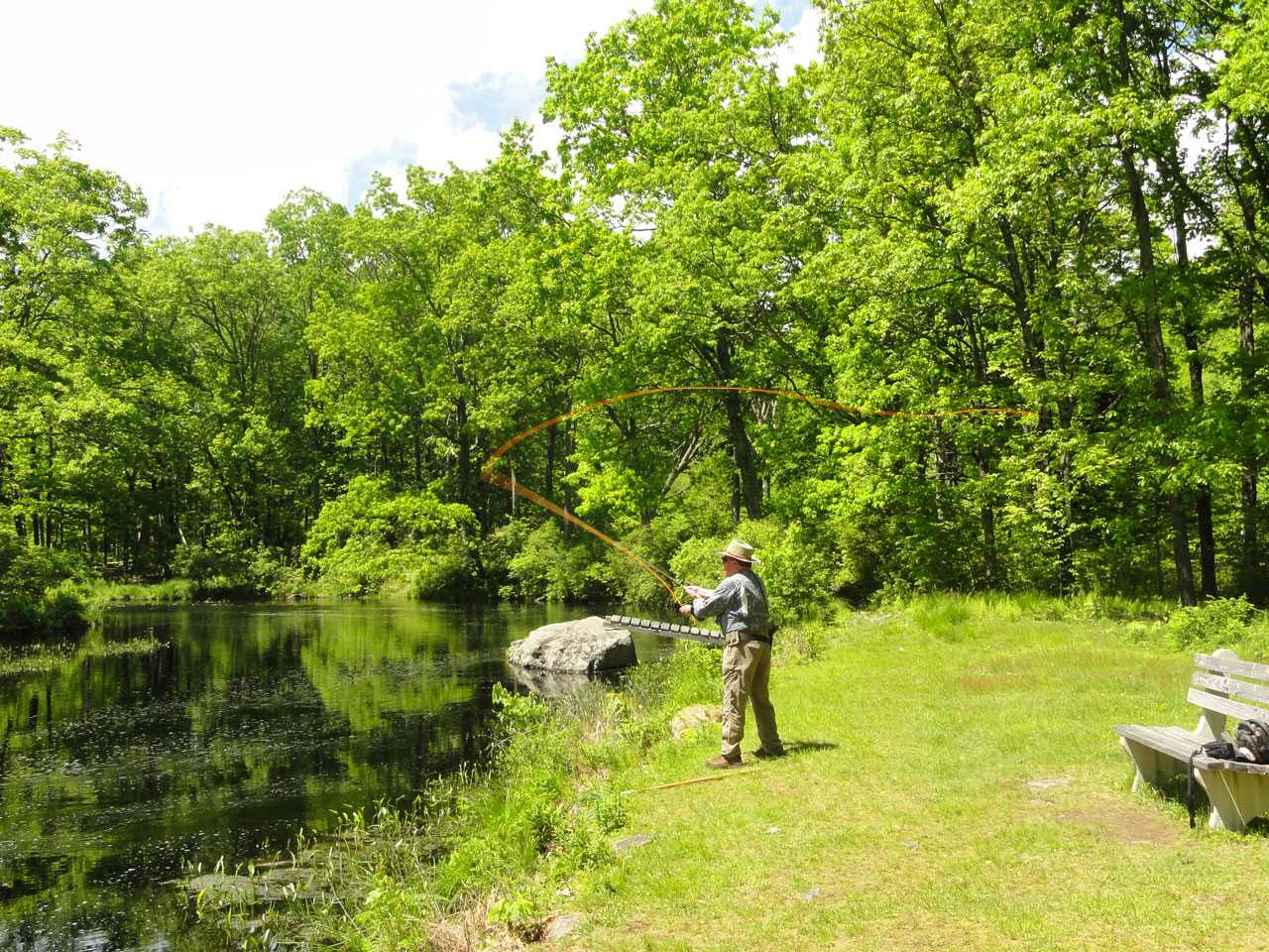 People fall in love with fly-fishing because of the beauty of the cast, the relaxation, and the fact that it usually takes place in a scenic location. Besides, it’s fun. Fly-fishing is very different from bait casting or spin fishing. In the latter two, you cast live bait or a lure, both of which have some weight to them, using a relatively thin line. In fly casting, you present an almost weightless artificial fly using the energy and speed imparted to a relatively thick and heavy line (as compared to a spinning or bait-casting line) by the action of the fly rod. Many people are put off by fly-fishing because they believe learning to cast is difficult: it is not. If you can clean a paintbrush, you already have mastered the fundamentals of fly casting.