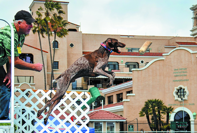 FMCA member Milt Wilcox has been running his family-friendly Ultimate Air Dog dock-jumping events since 2005; here, he trains a dog to jump.