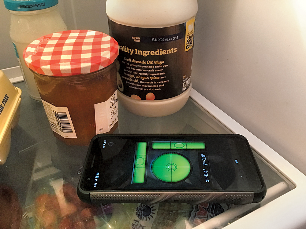 A bubble level app, which can be downloaded to a smartphone, is a handy way to check whether an RV’s leveling jacks are out of calibration.